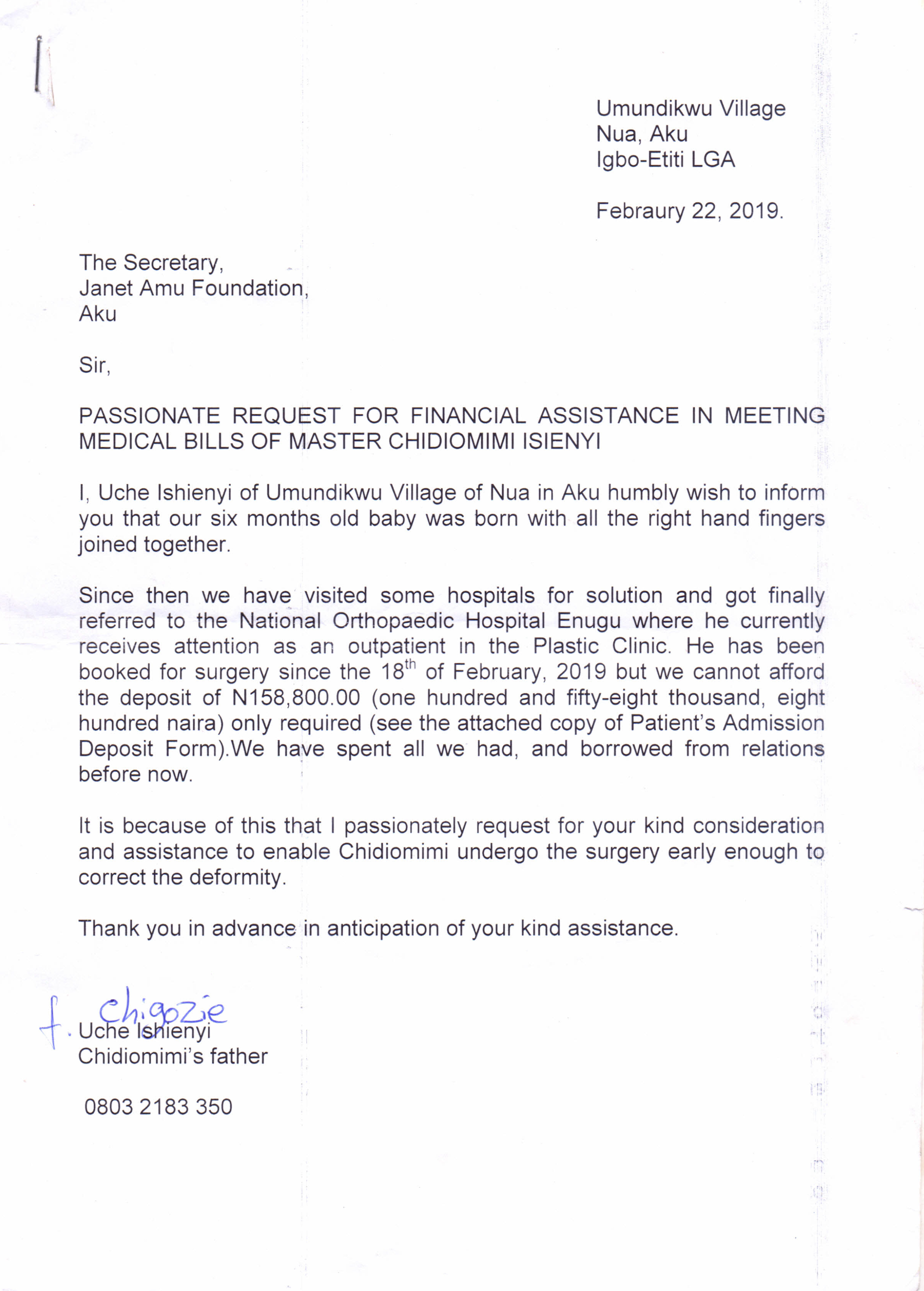 When I heard about Janet Amu Foundation, I went and got their form. God made it successful for me. I am very grateful for what the Foundation has done in my life.