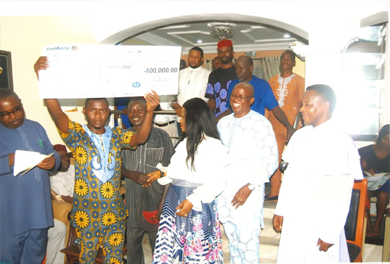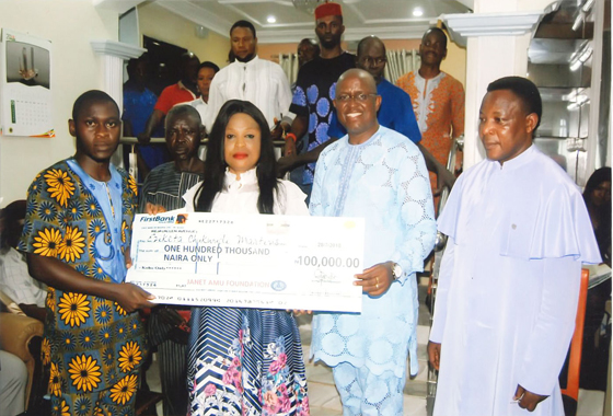 JAF President and wife presenting a cheque to Mr. Eziketa Chukwudi during the inaugural award ceremony on July 29, 2018