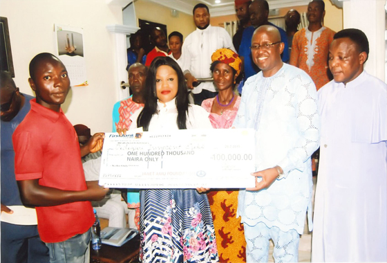 Didigwu Innocent receiving his award as President, wife and Rev. Fr. Makata look on